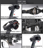 - Functions: Forward, reverse, proportional steering, tank turn, crawling mode