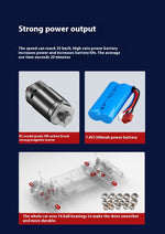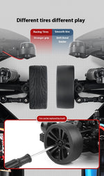 Equipped with a 4-wheel drive system, high-speed brushed motor, and drift tires, it reaches speeds of up to 50 km/h while handling sharp turns and controlled slides with ease. Its independent suspension and shock absorbers provide stability at high speeds, making it perfect for smooth asphalt tracks, parking lots, and drift circuits.